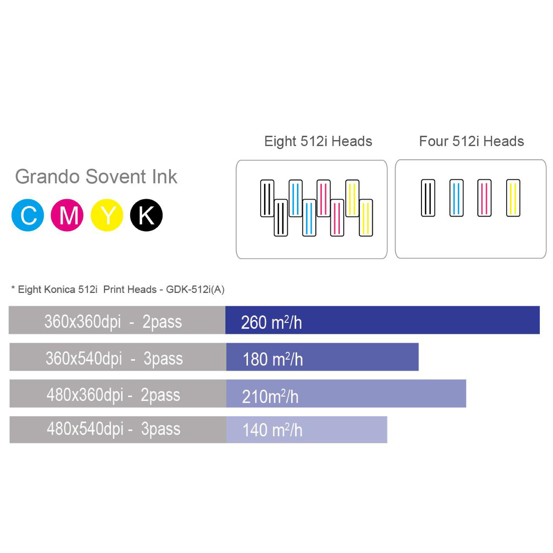 Grando Solvent Digital Printing with 4 konica 512i printheads, (upgradeable to 8 printheads).
