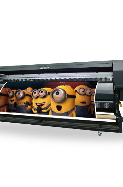Grando Eco Solvent Digital Printing with 4 Epson i3200 printheads, Maximum Speed 85 m2/h.